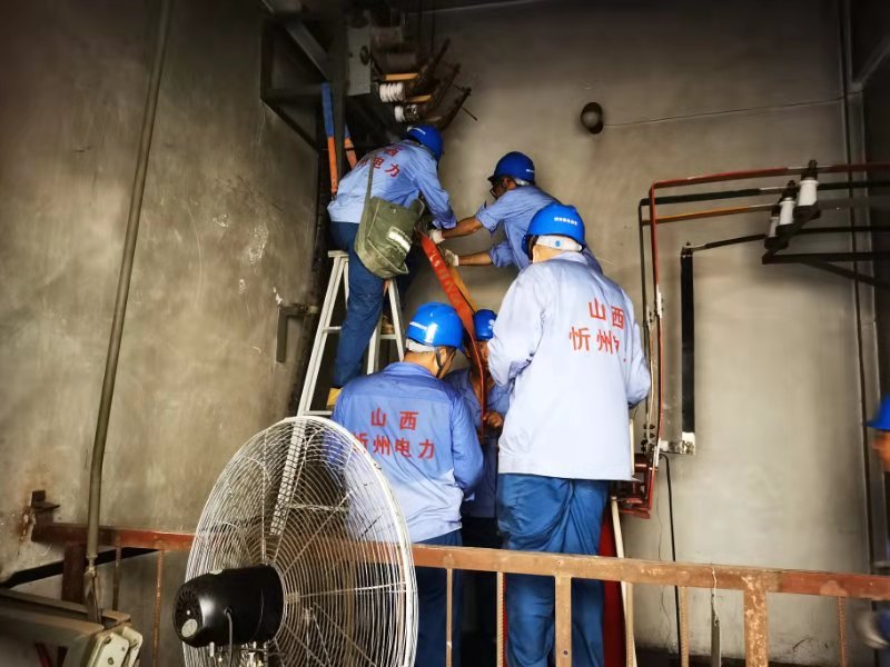 7月27日早8時(shí),國(guó)網(wǎng)忻州供電公司保供電小分隊(duì)9人奔赴現(xiàn)場(chǎng),進(jìn)入小區(qū)配電室的那一瞬間,就被眼前的場(chǎng)景驚到了,配電室內(nèi)地面浸水導(dǎo)致主變地基下沉、變壓器基礎(chǔ)嚴(yán)重傾斜,與之相連的高壓側(cè)設(shè)備基本損壞,母排變形、融管炸裂、觸頭損壞,目測(cè)這里的工作任務(wù)量估計(jì)得干到晚上了。