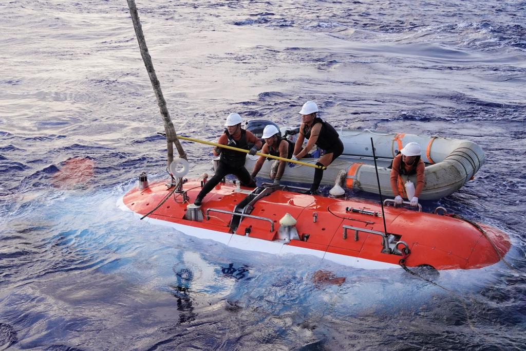新華社“深海一號”9月2日電(記者王聿昊)“蛟龍?zhí)枴陛d人潛水器1日完成2024西太平洋國際航次科考的第11次下潛作業(yè),潛航員傅文韜、下潛科學家許學偉和陳旭光在西太平洋皮加費塔海盆完成5572米大深度下潛,順利完成深海羽流絮凝實驗。