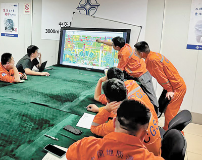 科研人員在研究“夢想”號設(shè)計圖紙。 廣州海洋地質(zhì)調(diào)查局供圖