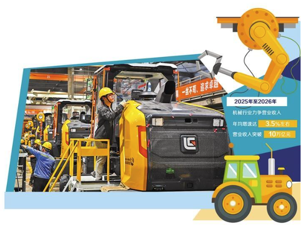 《方案》提出,2025年至2026年,機(jī)械行業(yè)運(yùn)行保持平穩(wěn)向好態(tài)勢(shì),重點(diǎn)產(chǎn)業(yè)鏈供應(yīng)鏈韌性和安全水平持續(xù)提升,發(fā)展質(zhì)量效益邁上新臺(tái)階,力爭(zhēng)營(yíng)業(yè)收入年均增速達(dá)到3.5%左右,營(yíng)業(yè)收入突破10萬(wàn)億元。中國(guó)機(jī)械工業(yè)聯(lián)合會(huì)相關(guān)負(fù)責(zé)人表示,《方案》的目標(biāo)設(shè)定,體現(xiàn)了規(guī)模與質(zhì)量并重的系統(tǒng)性思維,強(qiáng)調(diào)供給和需求兩側(cè)協(xié)同發(fā)力。