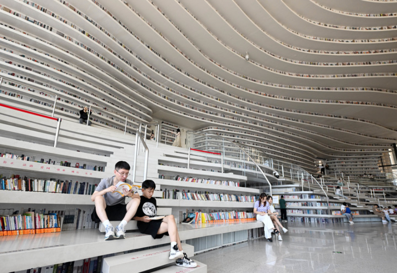 圖為市民在天津?yàn)I海新區(qū)圖書館內(nèi)閱讀。新華社記者 趙子碩 攝