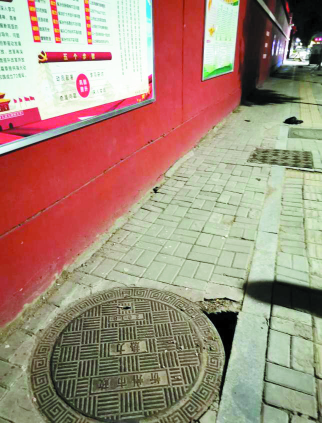 又 訊 6月14日,有熱心市民向本報反映,位于忻州八中門口的一下水井蓋旁路面損壞,形成了一個窟窿,存在行人被絆倒甚至是路面塌陷的安全隱患。希望有關部門盡快修復,還附近學生和市民一個安全的出行環(huán)境。(張志遠)