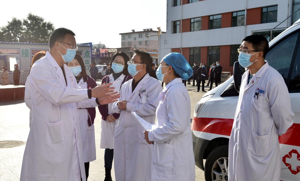 省能源集團(tuán)在后川村的駐村隊(duì)員牛澤召突發(fā)劇烈胸痛、出冷汗,當(dāng)?shù)卮甯刹炕鹚賹⑵渌偷娇h人民醫(yī)院。接診患者后,大夫們一邊聽診一邊了解病情,只見病人面色蒼白,不停地口吐白色粘痰,主訴渾身發(fā)冷、胸憋、胸痛,無法確定病情。當(dāng)即把情況匯報(bào)給了新任院長(zhǎng)白鳳云。