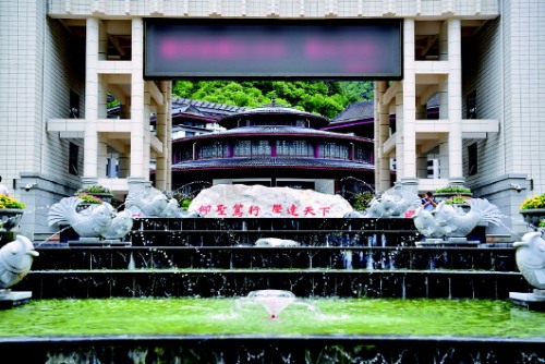 但校園內(nèi)比較顯眼的是一些與教學(xué)無關(guān)的設(shè)施:從氣派的仿古牌坊式大門進(jìn)入校園,4層噴泉水景沿步道拾級(jí)而上,16尊石刻鯉魚分布兩側(cè),一方約8米長(zhǎng)、1.5米高的校訓(xùn)大理石碑位于噴泉盡頭。據(jù)學(xué)校工作人員介紹,該水景取“鯉魚跳龍門”之意,從西安拉來的校訓(xùn)石碑就花費(fèi)了五六萬元。