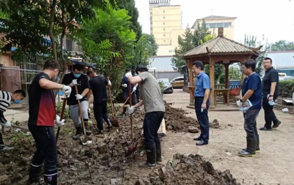 國家開發(fā)銀行鄉(xiāng)村振興部的田扶搖正和國家開發(fā)銀行的碩博志愿者隊一起,在社區(qū)清理淤泥:“大家都是利用周末時間自發(fā)前來的志愿者,有的同事還帶了家屬一起來支援災區(qū),也都想力所能及地出一份綿薄之力。”