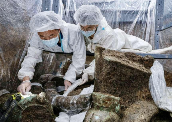 天道酬勤,1986年7月至8月,三星堆遺址一、二號祭祀坑被考古工作者發(fā)現(xiàn),大量青銅器、玉器、金器等珍貴文物出土,“一醒驚天下”。1987年至2019年,考古工作者對城墻與城壕、仁勝村墓地、青關山大型建筑基址等重要遺存進行了多次發(fā)掘,對三星堆古城范圍、功能布局以及建造過程有了基本認識。2019年秋,三星堆遺址祭祀坑區(qū)考古發(fā)掘重啟,新發(fā)現(xiàn)的6個“器物坑”發(fā)掘出土青銅器、金器、玉器、牙雕等文物共計17000余件,包括青銅大面具、青銅神壇等重要文物,“再醒驚天下”。