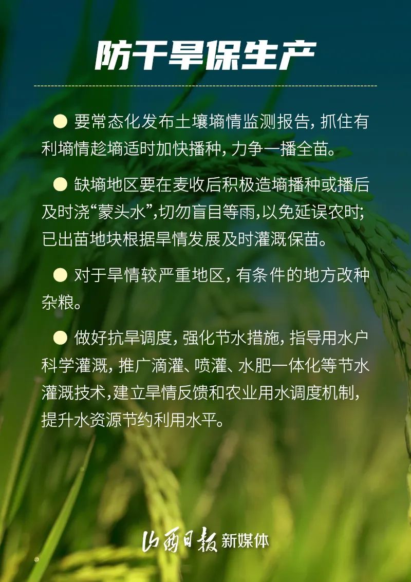 6月—8月是糧食作物生長發(fā)育和產(chǎn)量形成的關(guān)鍵期。預(yù)計今年汛期全省可能出現(xiàn)區(qū)域性極端強(qiáng)降水過程并引發(fā)洪澇和次生地質(zhì)災(zāi)害,未來三個月全省平均氣溫較常年同期偏高。因此,省農(nóng)業(yè)農(nóng)村廳會同省水利廳、省應(yīng)急管理廳、省氣象局制定《科學(xué)應(yīng)對旱澇等自然災(zāi)害奮力奪取秋糧和全年糧食豐收預(yù)案》,全力抓好防汛抗旱應(yīng)對工作,努力奪取全年糧食和農(nóng)業(yè)豐收。