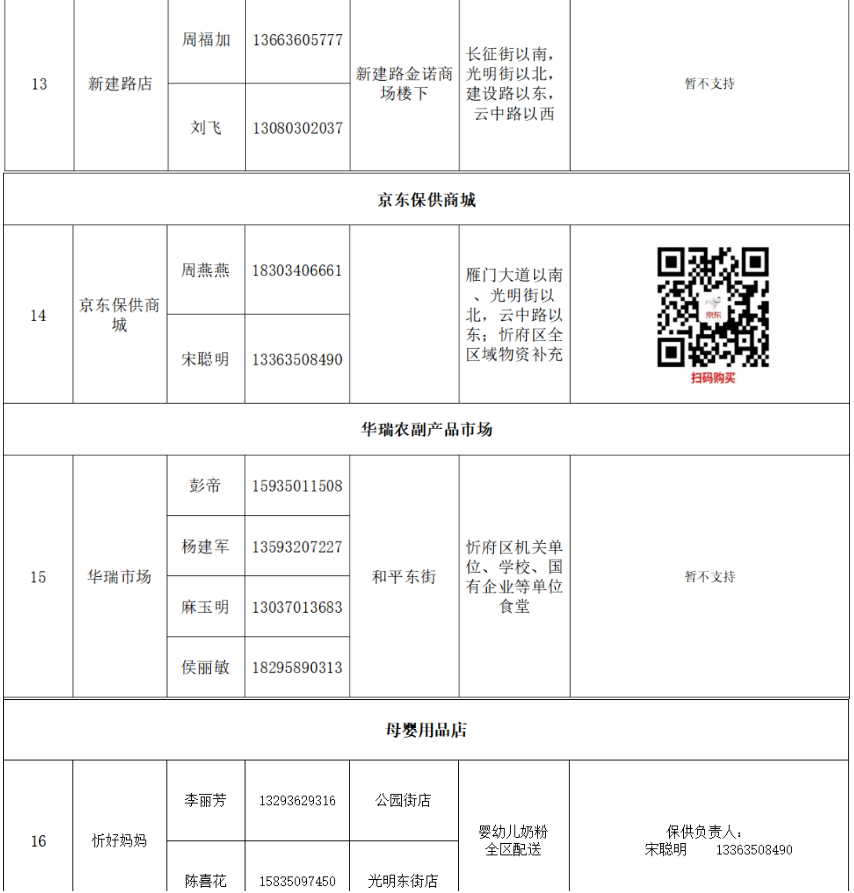 忻府區(qū)保供超市聯(lián)系方式和供應(yīng)區(qū)域表