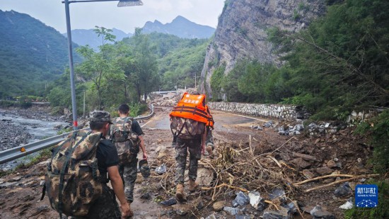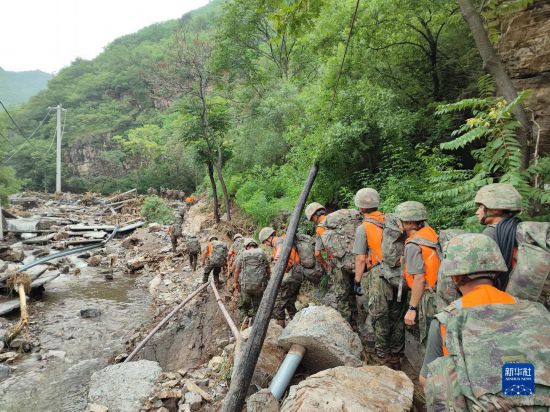 因山洪暴發(fā),北京市門頭溝區(qū)齋堂鎮(zhèn)交通中斷。武警北京總隊機動第一支隊?wèi)?yīng)急救援隊徒步15公里山路,人均負(fù)重25公斤,為12個村運送食品、醫(yī)藥、防疫、照明等基礎(chǔ)物資,保障村民基本生活。