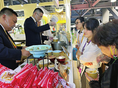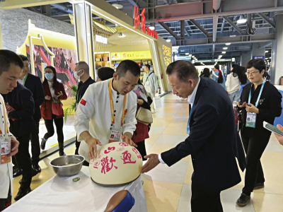 “此次參會,山西會務(wù)集團特別準備了近年推陳出新、改良工藝的美食新品,希望以美食為載體,以文化為橋梁,讓更多人了解山西、走進山西、愛上山西、投資山西?!蓖醮喝A說,“從連續(xù)幾天觀眾的反饋來看,山西刀削面、莜面栲栳栳最受大家歡迎,每天都有人排長隊品嘗,可以說供不應(yīng)求。此外,酥脆香甜的原平鍋盔、用石子炒制的石頭餅、精心烘焙的黃花餅、經(jīng)典小吃柳林碗托等都是觀眾愛吃的‘爆款’,再配合精彩的面食表演,來往客商連連點贊,直呼好吃好看?!?/p>