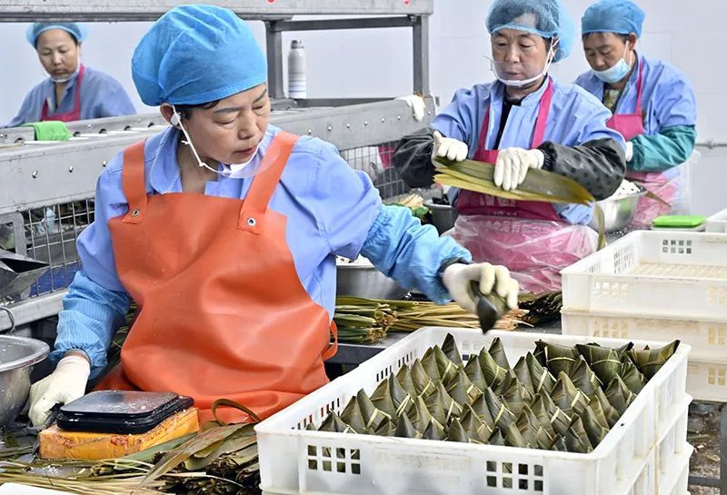 二是工藝出“粽”?!叭斎~,三顆棗,一百克糯米不能少?!鼻嗵留兆硬粌H全手工傳統(tǒng)工藝包制,更輔以現(xiàn)代高溫滅菌和真空包裝技術,傳統(tǒng)與現(xiàn)代相結合,讓青塘粽子美味更健康。