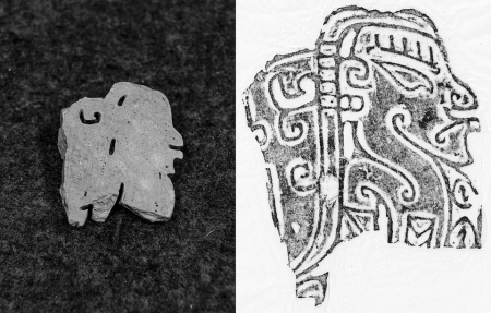 左圖是2024 年 7月10日在四川省文物考古研究院拍攝的玉石上陽刻的側(cè)身人像;右圖是玉石上陽刻的側(cè)身人像拓片。新華社發(fā)