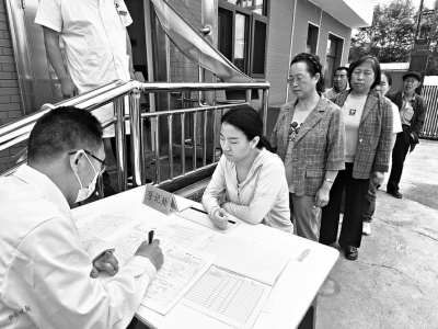 “有沒有基礎(chǔ)疾???”“有沒有過敏史?”“早上吃飯了沒?”……8月20日10時,在靜樂縣杜家村鎮(zhèn)中心衛(wèi)生院的門口,等著要體檢的村民們已經(jīng)排起了長隊。