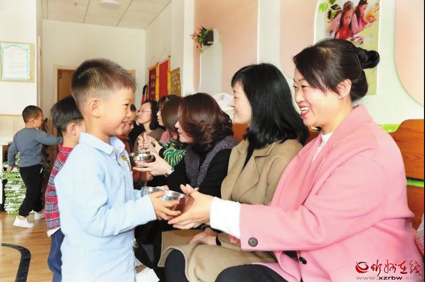 3月8日,忻州市幼兒園雁門分園舉辦了以感恩為主題的親子活動,通過形式多樣的活動讓孩子們陪媽媽一起過節(jié),引導幼兒從小學會感恩,讓媽媽們感受到孩子的成長與愛。圖為活動當天,幼兒將自己做的梨湯送給媽媽。 (本報通訊員 攝)