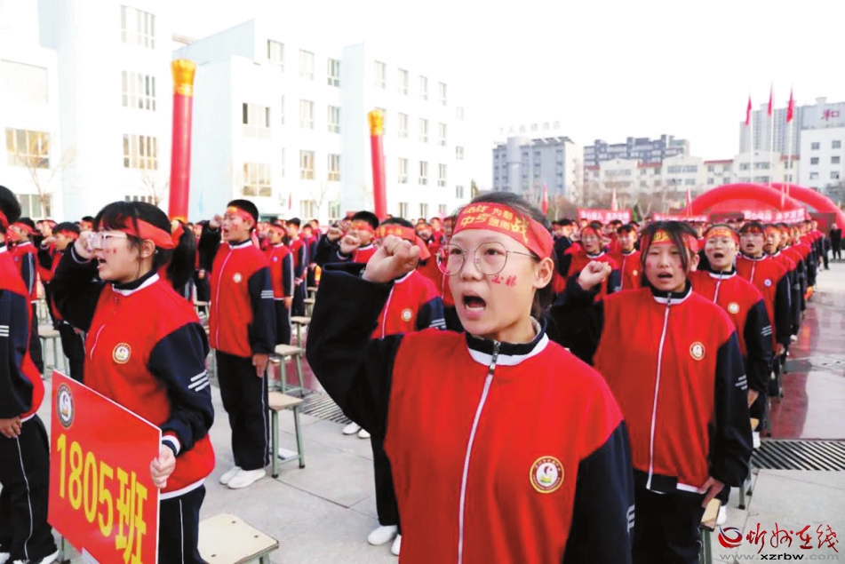教師白瑜老師在講話中說出了全體老師的心聲,她說,孩子們點點滴滴的進步凝聚了老師們無私的奉獻。在決戰(zhàn)中考的一百天里,全體教師將增強責任感和使命感,團結協(xié)作,奉獻給孩子們高質(zhì)量的課堂教學,護佑學子們身心健康。希望初三全體學子全力以赴,爭分奪秒,超越自我,鑄就輝煌!學生張皓越帶領初三年級全體同學莊嚴宣誓:奮戰(zhàn)百日,決勝中考,圓夢六月!同學們的誓言鏗鏘有力,擲地有聲,振奮人心。家長張靚梅的講話樸實無華、道出了全體家長的殷切希望。