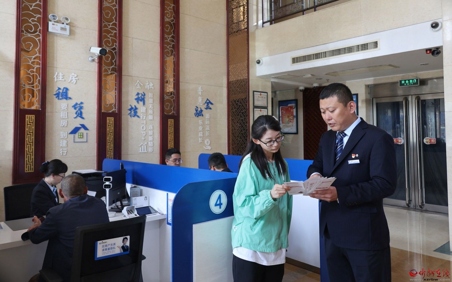 建行五臺山風景區(qū)支行的工作人員正熱情地為客戶進行業(yè)務宣傳。在營業(yè)大廳里,該行員工為客戶耐心細致地講解各項金融業(yè)務的特點和優(yōu)勢,從專業(yè)的角度為客戶分析不同業(yè)務的適用性,以滿足客戶多樣化的需求,讓客戶在輕松的氛圍中了解金融產(chǎn)品,感受建行服務的貼心與溫暖。(宮清華攝)
