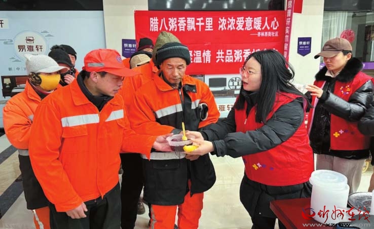 俗話說“過了臘八就是年”,年味就是從一碗熱氣騰騰的臘八粥開始的。寒冬臘月,忻府區(qū)杏林西街社區(qū)攜手愛心企業(yè)寒冬送溫情,為奮戰(zhàn)在一線的環(huán)衛(wèi)工人熬制了熱氣騰騰的紅豆粥。