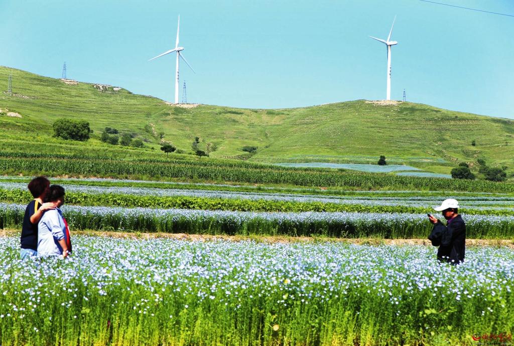近年來,神池縣加大對胡麻種植戶的補貼力度,每畝補貼260元,在胡麻品質(zhì)最優(yōu)的烈堡鄉(xiāng)種植1.6萬畝,打造了970畝有機旱作胡麻種植示范基地。每年6月下旬至7月下旬,烈堡鄉(xiāng)解家?guī)X到長城寨沿線的胡麻花盛開,藍色花海與沿線的長城交相輝映,組成一幅動人的美景畫。烈堡鄉(xiāng)鄉(xiāng)長趙崢嶸介紹,當(dāng)?shù)卣谔剿鳜F(xiàn)代農(nóng)業(yè)發(fā)展新路徑,通過“胡麻產(chǎn)業(yè)+旅游”的方式,吸引更多游客,使胡麻成為帶動鄉(xiāng)村振興的重要引擎。