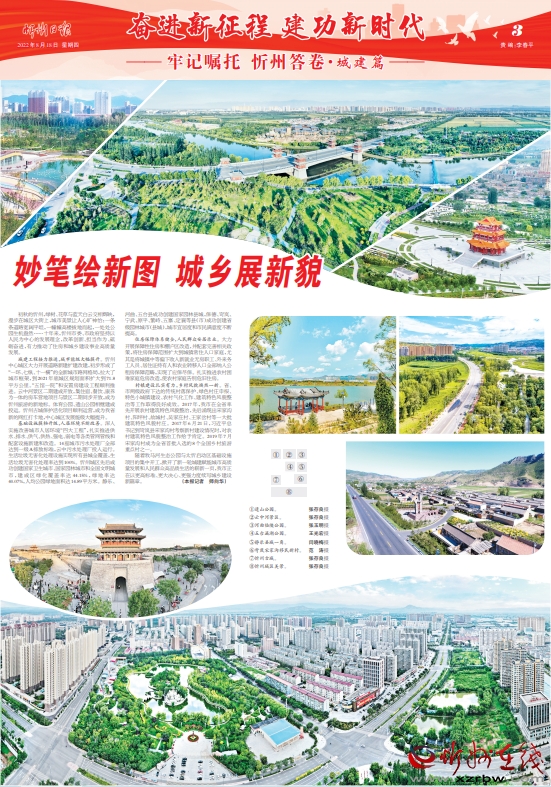 初秋的忻州,綠樹、花草與藍(lán)天白云交相輝映,漫步在城區(qū)大街上,城市美景讓人心曠神怡:一條條道路寬闊平坦,一幢幢高樓拔地而起,一處處公園生機(jī)盎然……十年來,忻州市委、市政府堅(jiān)持以人民為中心的發(fā)展理念,改革創(chuàng)新、擔(dān)當(dāng)作為、砥礪奮進(jìn),有力推動(dòng)了住房和城鄉(xiāng)建設(shè)事業(yè)高質(zhì)量發(fā)展。