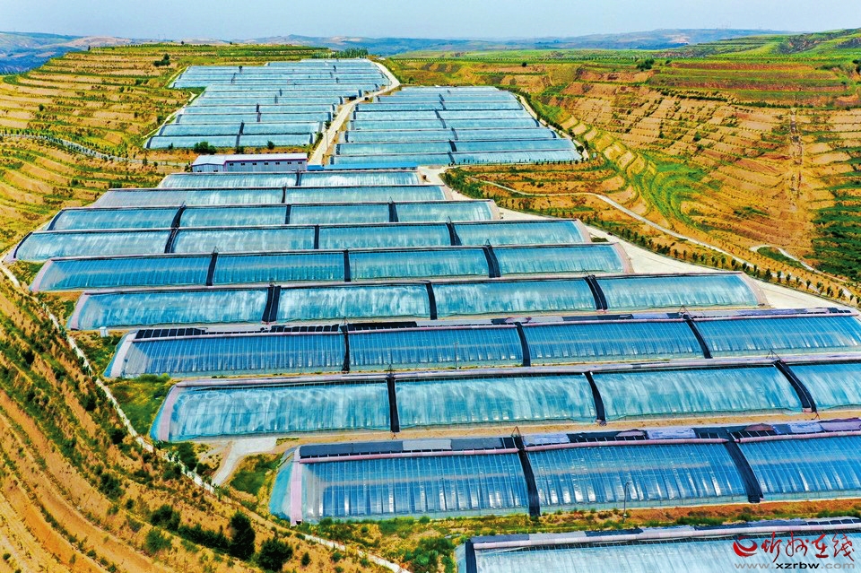 峁梁之間,溝壑縱橫。下了高速,路隨峁轉(zhuǎn),快到榆嶺窊,車窗外的風景也變了,密集閃過一排排人造林。上峁放眼,溝梁之間,成片的日光溫室大棚宛如湖泊,在冬日暖陽下反射出粼粼波光。大棚之上,這邊一排排白墻灰瓦是別墅群,那邊人才公寓緊挨著老年公寓,飄揚著鮮艷國旗的地方是榆嶺窊村黨群服務(wù)中心。