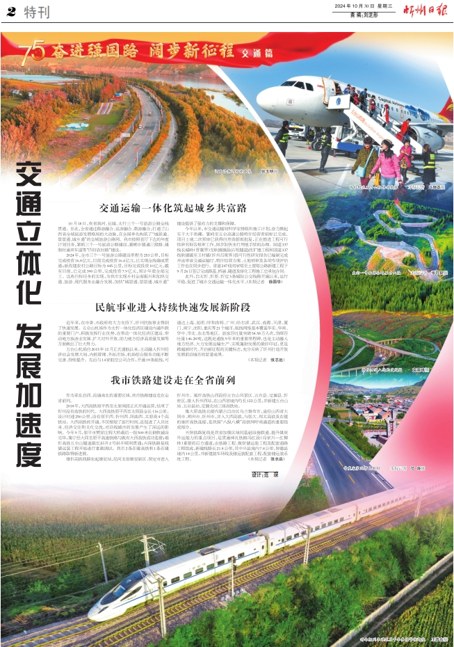 2024年,全市三個一號旅游公路建設(shè)里程為253公里,目標(biāo)完成投資16.8億元,目前完成投資16.4億元,已實(shí)現(xiàn)全線建成貫通;新改建農(nóng)村公路目標(biāo)為445公里,目標(biāo)完成投資10億元,截至目前,已完成390公里,完成投資7.9億元,預(yù)計年底全部完工。這些目標(biāo)任務(wù)的實(shí)現(xiàn),為我市實(shí)現(xiàn)鄉(xiāng)村全面振興和加快交通、旅游、現(xiàn)代服務(wù)業(yè)融合發(fā)展,加快“城景通、景景通、城鄉(xiāng)通”建設(shè)提供了強(qiáng)有力的支撐和保障。