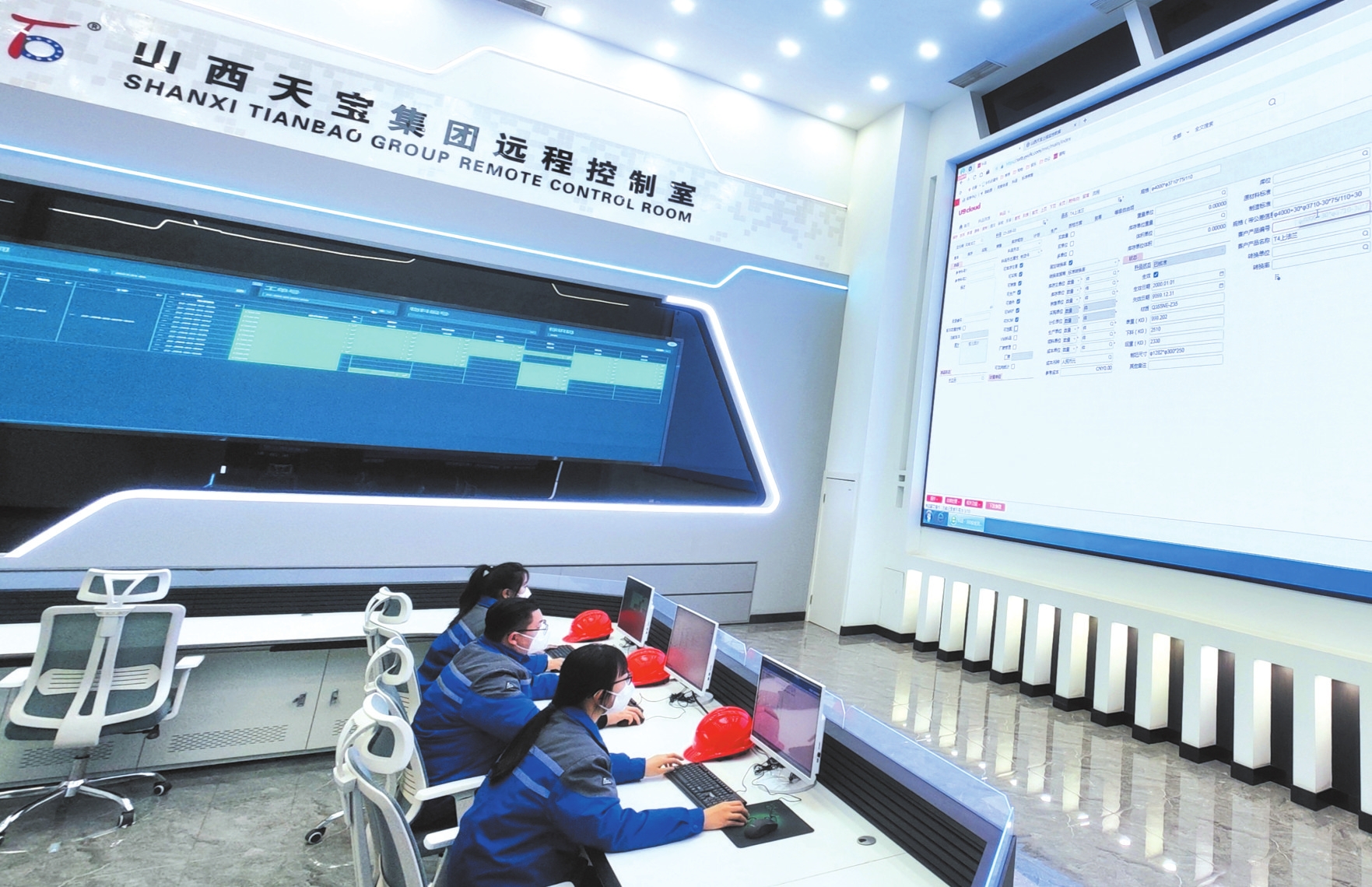 山西天寶集團工作人員正在查看訂單生產(chǎn)進度,了解設備運行情況。本報記者 張存良攝