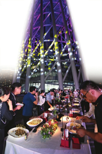 在“山西之夜”,嘉賓們有無數(shù)種打開山西的方式,美食無疑是最直接的一種。廣州塔二層的室外場地上,冷餐會重點圍繞我省11市特色美食,推出16道菜品、5種小吃、26種飲品、7種干果和4種水果。