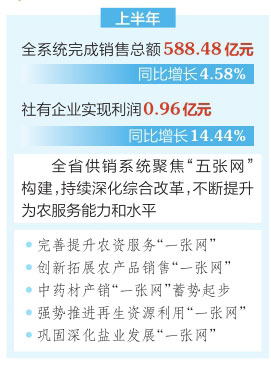 本報(bào)訊(記者高瑋)7月21日,全省供銷系統(tǒng)上半年經(jīng)濟(jì)運(yùn)行分析暨“五張網(wǎng)”構(gòu)建現(xiàn)場推進(jìn)會(huì)在長治市武鄉(xiāng)縣召開。今年以來,全省供銷系統(tǒng)以“五張網(wǎng)”構(gòu)建為統(tǒng)領(lǐng),推動(dòng)供銷工作全面提質(zhì)增效,經(jīng)濟(jì)運(yùn)行穩(wěn)定向好。上半年,全系統(tǒng)完成銷售總額588.48億元,同比增長4.58%;社有企業(yè)實(shí)現(xiàn)利潤0.96億元,同比增長14.44%。