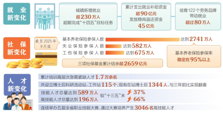 “十四五”時期,我省始終將穩(wěn)就業(yè)擺在突出位置,千方百計促進(jìn)高質(zhì)量充分就業(yè)。把經(jīng)濟(jì)發(fā)展與擴(kuò)大就業(yè)緊密結(jié)合起來,不斷優(yōu)化政策,為企業(yè)減負(fù)穩(wěn)崗,累計支出就業(yè)補助資金超90億元,發(fā)放穩(wěn)崗返還資金45億元。對于重點群體精準(zhǔn)施策、分類幫扶,開展高校畢業(yè)生等青年群體就業(yè)服務(wù)攻堅行動,提供針對性就業(yè)創(chuàng)業(yè)服務(wù)。五年來,全省城鎮(zhèn)新增就業(yè)超230萬人,超額完成“十四五”目標(biāo)任務(wù),城鎮(zhèn)調(diào)查失業(yè)率控制在目標(biāo)以內(nèi)。