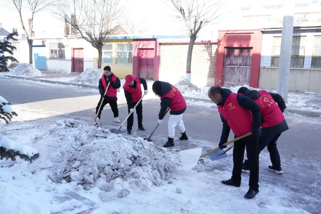 雪中志愿紅,最是暖心人??h城大街小巷隨處可見身穿“紅馬甲”的志愿者推開厚厚的積雪,為居民留下一條條“安全路”,雖然當?shù)貧鉁氐瓦_到零下二十多度,但大家不畏嚴寒鉚足干勁,分工有序、默契配合,干得熱火朝天。