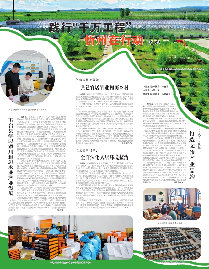 以學習運用“千萬工程”經(jīng)驗為引領,堅持規(guī)劃先行。具體實施3個精品示范村、25個提檔升級村。深入推進廁所、垃圾、污水“三大革命”,改造衛(wèi)生廁所372座,完成3個鄉(xiāng)鎮(zhèn)6個村的生活污水治理工程,確保農(nóng)村生活垃圾收運處置覆蓋自然村比例達到96%以上。新建改建農(nóng)村公路69.4公里和“三個一號”旅游公路36.06公里。打造庭院經(jīng)濟示范村15個、示范戶75戶。五臺現(xiàn)代農(nóng)業(yè)產(chǎn)業(yè)示范區(qū)在堅持典型引路的基礎上,還要加大力度推廣東雷鄉(xiāng)上王全村“流量經(jīng)濟”的成功經(jīng)驗,推進鄉(xiāng)村產(chǎn)業(yè)發(fā)展,帶動農(nóng)民增收致富,確保農(nóng)民人均可支配收入增幅高于年度地區(qū)生產(chǎn)總值增速。動態(tài)監(jiān)測防貧返貧和易地搬遷后續(xù)扶持,促進脫貧人口持續(xù)增收,牢牢守住不發(fā)生規(guī)模性返貧的底線。強化文明村、星級文明戶創(chuàng)建,堅持用文明鄉(xiāng)風浸潤美麗鄉(xiāng)村。