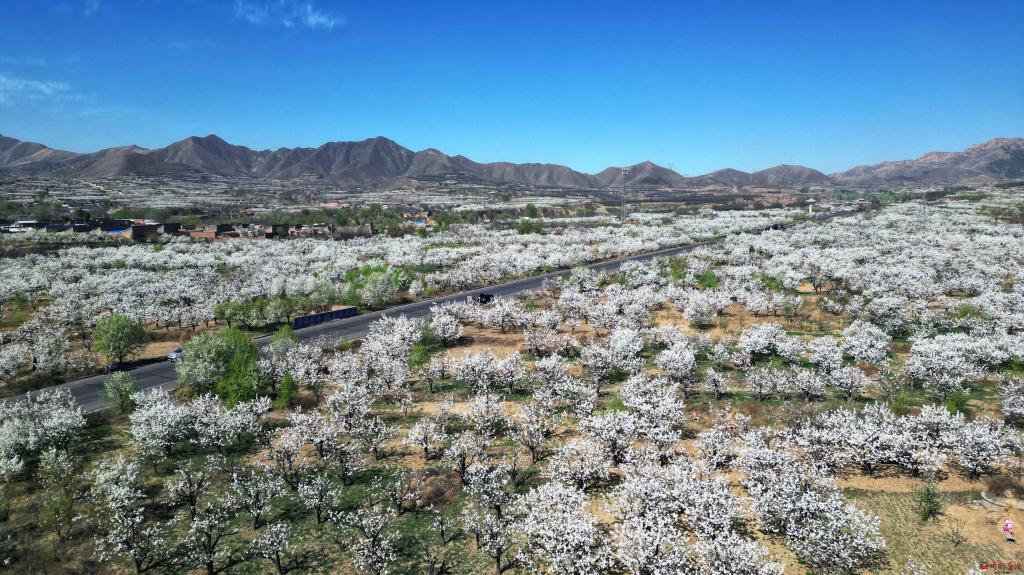 芳菲四月,在原平同川地區(qū)的黃色梯田上,晴雪綻放,香風(fēng)不斷,整個原野一片香雪海。清代詩人王佩鈺曾留下“十里香風(fēng)吹不斷,萬株晴雪綻梨花”的佳句,詩和遠(yuǎn)方在梨花中完美交融。