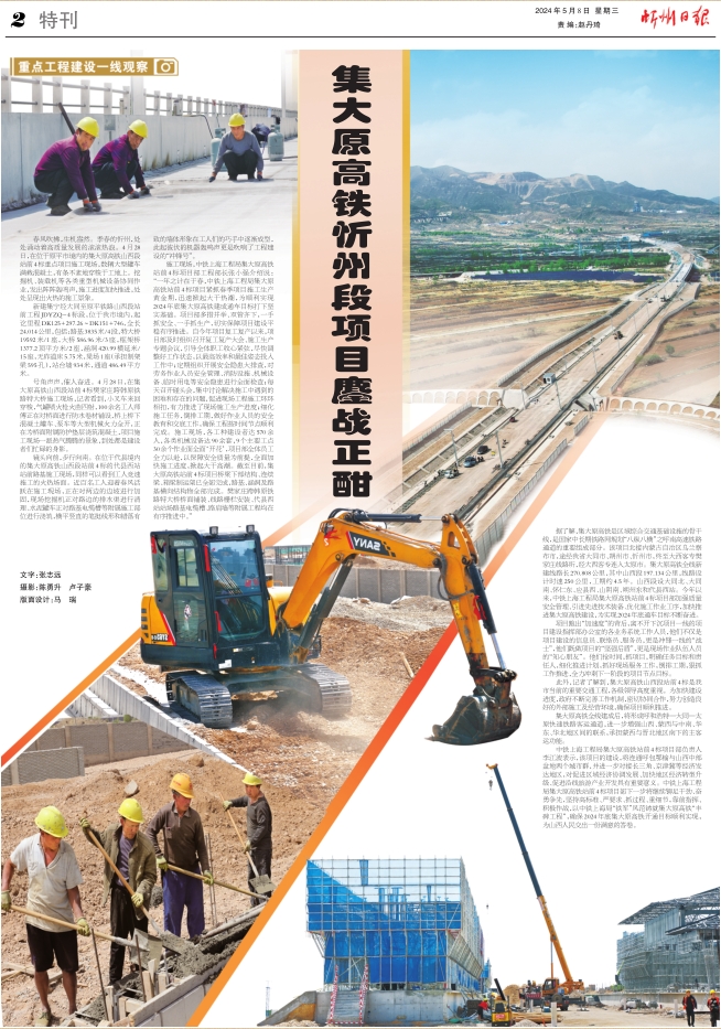 春風吹拂,生機盎然。季春的忻州,處處涌動著高質(zhì)量發(fā)展的滾滾熱浪。4月28日,在位于原平市境內(nèi)的集大原高鐵山西段站前4標重點項目施工現(xiàn)場,數(shù)輛大型罐車滿載混凝土,有條不紊地穿梭于工地上。挖掘機、裝載機等各類重型機械設備協(xié)同作業(yè),發(fā)出陣陣轟鳴聲,施工進度加快推進,處處呈現(xiàn)出火熱的施工景象。
