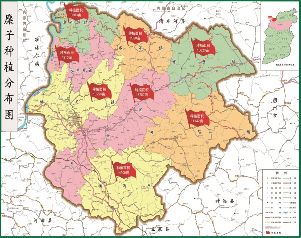 偏關(guān)縣位于 北緯39度小雜糧黃金種植帶 屬典型的冷涼山區(qū) 境內(nèi)晝夜溫差大、雨熱同季、光照充沛 為糜子提供了絕佳的生長(zhǎng)空間 自古以來(lái)就形成了種植糜子的農(nóng)業(yè)傳統(tǒng) 經(jīng)歷了大自然數(shù)千年優(yōu)勝劣汰的變遷 糜子至今在偏關(guān)的五谷雜糧中 占據(jù)著獨(dú)特的優(yōu)勢(shì) ▼ (偏關(guān)糜子種植分布圖)