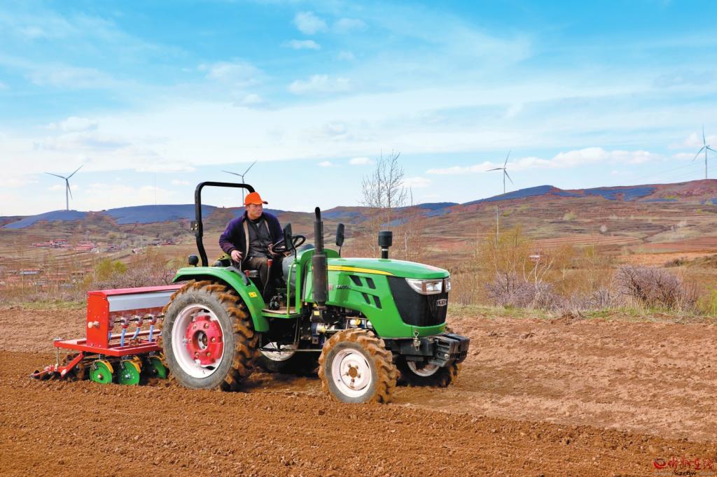 寧武縣余莊鄉(xiāng)三莊東村農(nóng)民正在進行莜麥播種作業(yè)。 吳光宇攝
