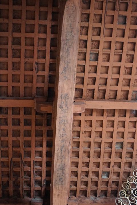在大殿工作的第三天,更大的驚喜到來。林徽因發(fā)現(xiàn)在一根梁底部有非常模糊的墨跡。她仰起頭,努力從不同角度觀察,已經(jīng)能夠讀出許多帶有冗長(zhǎng)唐代官銜的人名,其中最重要的是“佛殿主上都送供女弟子寧公遇”。