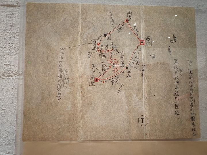 林徽因在給女兒的信中說,離開太原后由于交通不便,走得很慢,收不到信,也看不到報(bào)紙。她還畫了一張圖展示他們走過的一圈路,坐火車、公共汽車、騾車、貨車、騎馬、走路等,各種交通方式都嘗試了。
