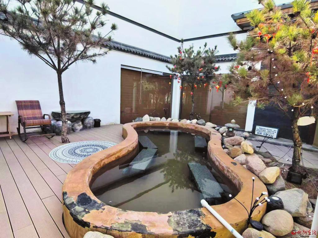 這家“升級版”的集餐飲、茶飲、溫泉康養(yǎng)、旅游度假于一體大型民宿占地近三畝,設計、建筑別具匠心。在有限的空間內,11個獨立的院落沒有“平鋪直敘”,通過朝向和方位的搭配互補,造成了曲徑通幽的效果。連接11個小院的路面遍布草坪,行人落腳處是一個個星羅棋布的舊磨盤。這一農耕文明元素的巧妙點綴只是一個細節(jié),卻足以看出經營者的良苦用心。11個院落就是11個獨立的溫泉民宿,院落、房間大小各異,內部格局、設施布置也各不相同,一個共同的特點是充分考慮到了私密性。院內、房間皆有造型各異的溫泉泡池,加水、放水皆由前臺智能調控。有的院落建起燒烤臺,統(tǒng)一提供木炭和燒烤用具。實行“管家式”一對一服務,精美茶點敞開供應。當街的餐飲、茶飲店起了個別致而有寓意的名字——“蒙太奇”,字面是電影剪輯術語,暗含的意思是:歡迎內蒙古、太原的游客來奇村……