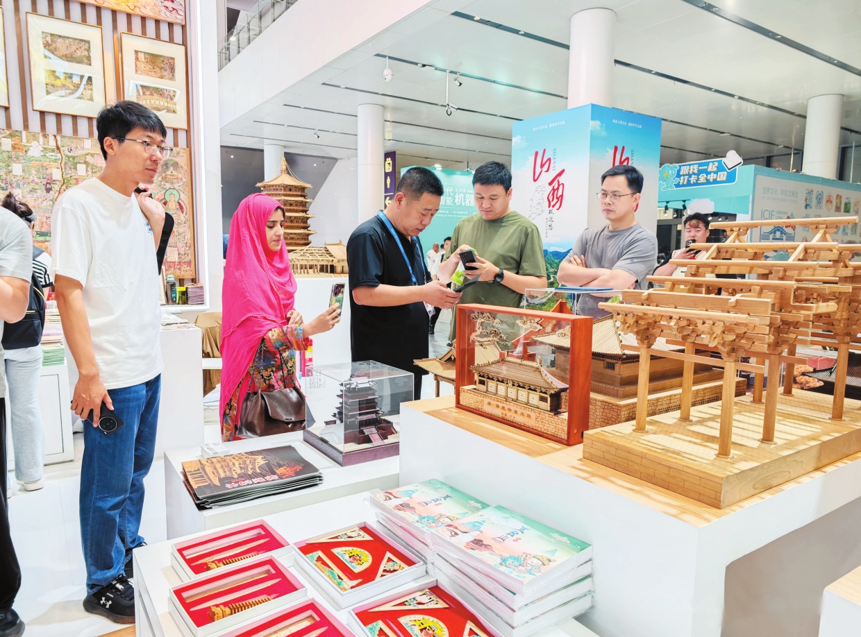 我市古建筑模型、文創(chuàng)產(chǎn)品受到參會嘉賓青睞。本報記者魏鵬飛攝