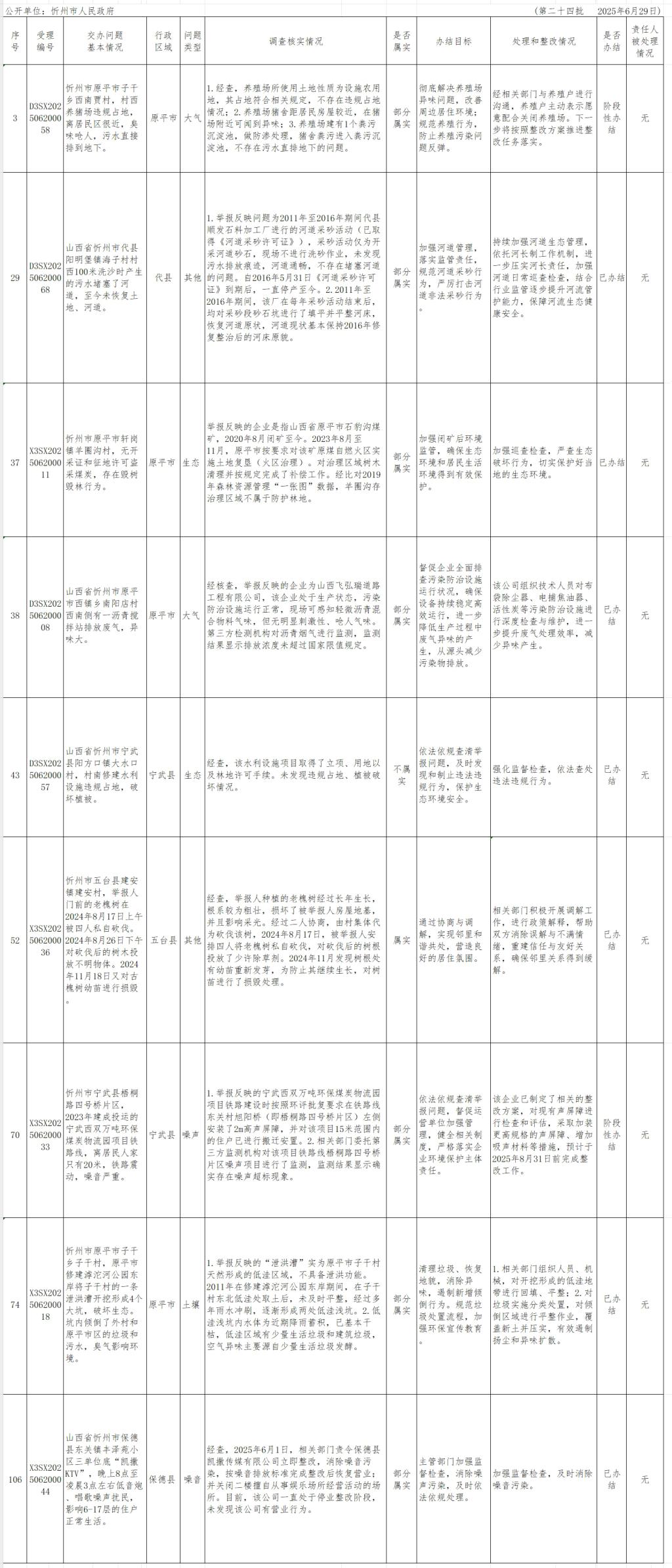 中央生態(tài)環(huán)境保護(hù)督察組群眾信訪舉報(bào)轉(zhuǎn)辦和邊督邊改公開(kāi)情況一覽表(第二十四批)
