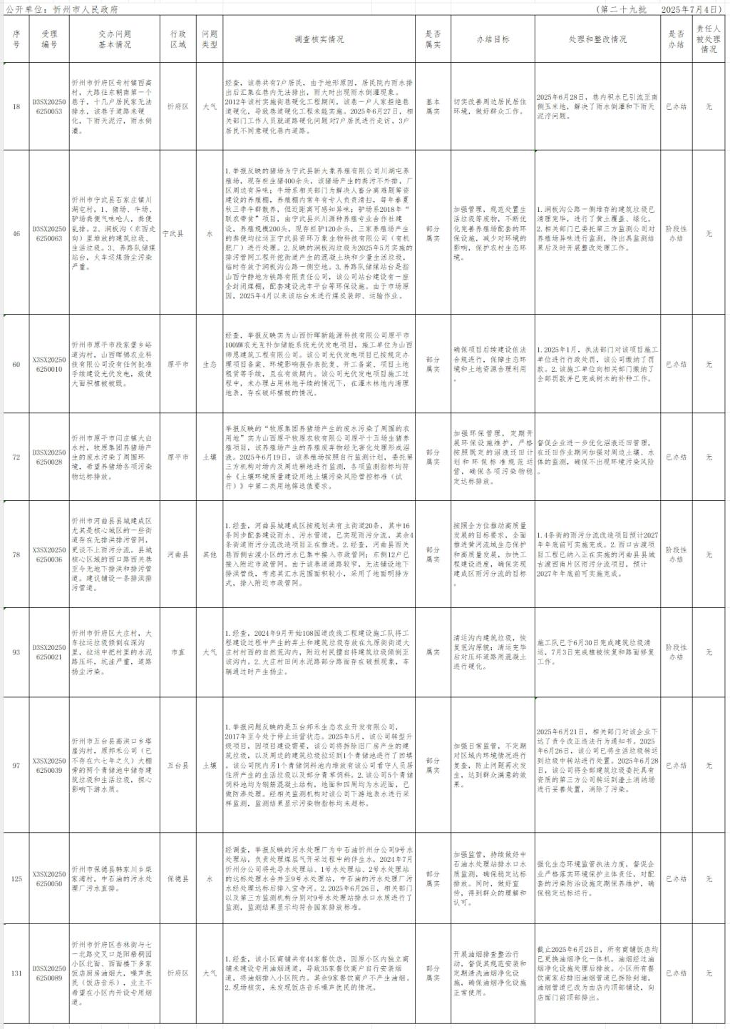 中央生態(tài)環(huán)境保護(hù)督察組群眾信訪舉報(bào)轉(zhuǎn)辦和邊督邊改公開(kāi)情況一覽表(第二十九批)