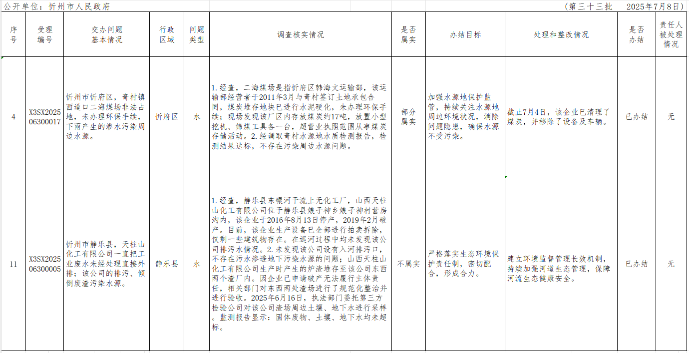中央生態(tài)環(huán)境保護(hù)督察組群眾信訪舉報(bào)轉(zhuǎn)辦和邊督邊改公開情況一覽表(第三十三批)