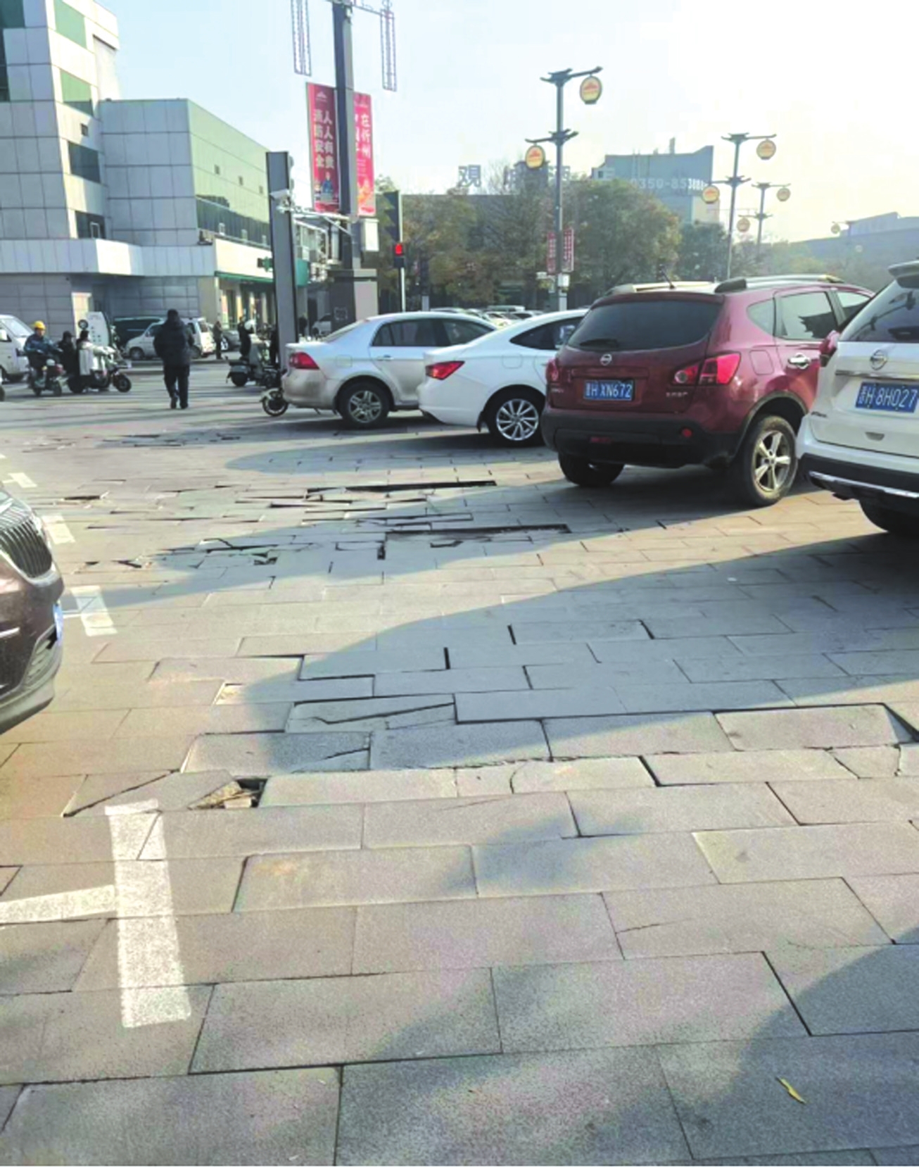 光明街新建路東北角地面破損嚴(yán)重。