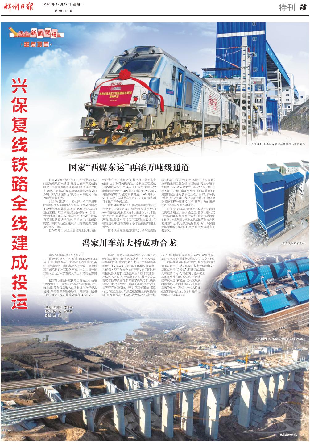 近日,保德縣境內(nèi)馮家川站裝車復(fù)線及儲運裝系統(tǒng)正式投運,這標志著興保復(fù)線鐵路這一國家重點能源通道項目全線建成并投入運營。該鐵路的煤炭年輸送能力將達5000萬噸,成為“西煤東運”戰(zhàn)略體系中的又一條萬噸級重載干線。