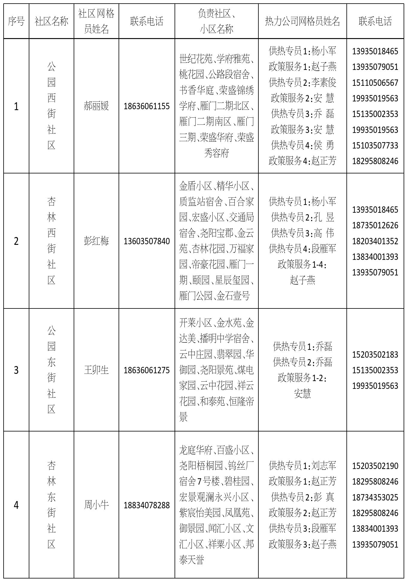 忻州城區(qū)供熱一片區(qū)網(wǎng)格員信息公示