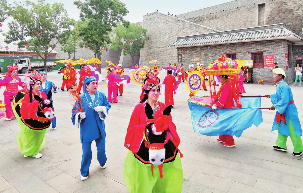 忻州“跑驢”俗稱“兜毛驢”,是民間舞蹈之一。伴奏以歡快、喜慶的八音為主,或可現(xiàn)場用嗩吶、小鼓、大鈸和小鈸等伴奏?!芭荏H”表演多以一男一女為一組(也有女扮男裝的),表演節(jié)目有“夫妻探親”“回娘家”“趕集路上”等。其中以小媳婦兒回娘家和表現(xiàn)農(nóng)村老漢和農(nóng)村老大娘的故事情節(jié)較為普遍。表演時小媳婦“騎驢”磨磨蹭蹭、小伙子趕“驢”風情萬種,運用舞蹈動作夸張地演繹驢的倔強和趕驢者的執(zhí)著?!芭荏H”的舞步很多,有平閃步、上山步、下山步、小跑步、驚驢步、后踢步、過河步等。表演形式有踩四腳、卷白菜、龍盤柱等,表演者即興使用,不受限制。演員相互配合,表演動作夸張,“騎驢上路”“騎驢下坡”“騎驢過河”“失蹄臥水”“毛驢抖水”“驢失前蹄”“毛驢跳躍”等舞姿,生動活潑、詼諧幽默、趣味無窮,備受歡迎。(市文化館供稿)