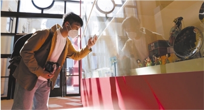 參觀者在“奮進(jìn)新時代”主題成就展上拍攝非遺作品和文創(chuàng)精品。新華社記者 張玉薇攝