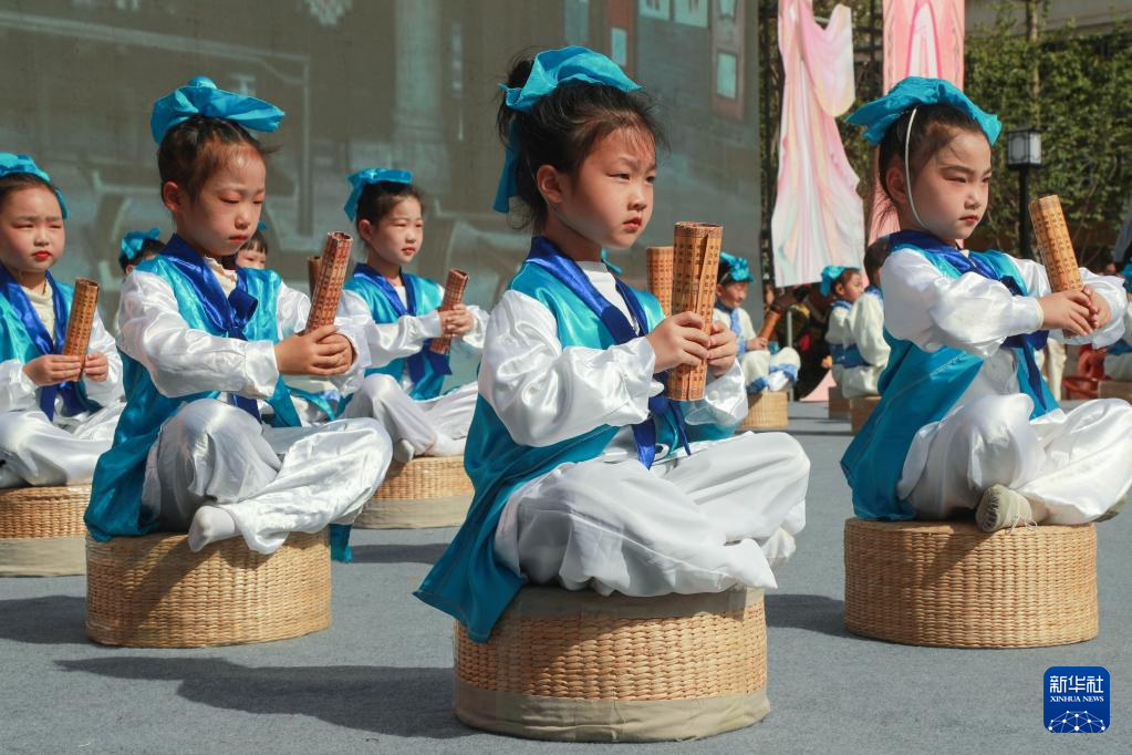 4月29日,小朋友在葉縣漢服文化節(jié)上表演。