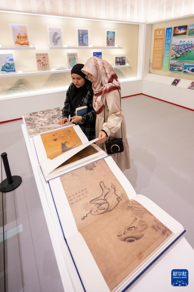 5月26日,觀眾在馬來(lái)西亞吉隆坡舉行的第40屆吉隆坡國(guó)際書(shū)展上觀看“中國(guó)歷代繪畫(huà)大系”特展展品。新華社記者 朱煒 攝