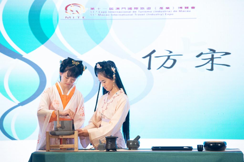 6月30日,表演者在澳門“茶和天下·雅集”暨茶文化之旅主題推廣活動上展示仿宋點茶。新華社記者 張金加 攝